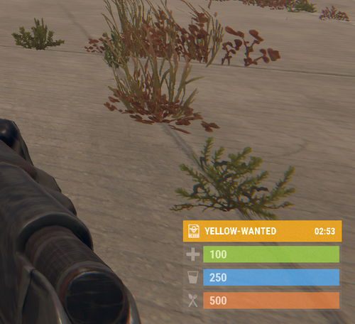 { "Red Wanted Time (Seconds)": 180, "Kill Penalty Time (Seconds)": 360, "Harm Penalty Time (Seconds)": 30, "Allow Broadcast Become A Red Wanted (true/false)": true, "Allow Broadcast Kill A Red Wanted (true/false)": true, "Allow Broadcast Kill A Yellow Wanted (true/false)": false, "The wanted time be reduced after the player is killed, 0 means no reduction (Seconds)": 180, "Wanted time resets after player dies (true/false)": false, "Chat Prefix": "[Wanted]:", "Chat Prefix color": "#00FFFF", "Chat steamID icon": 0 }