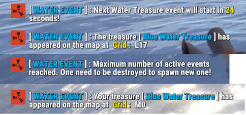 Water Treasure is event where Tugboats will spawn on ocean with loot ,npc and door to brake them !