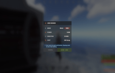 - Confirm the hire : the NPC mounts the wheel and starts generating power