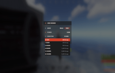 - Feed Your Worker : Use food from your inventory to restore stamina. Each food item has a configurable restore value (apples, cooked meat, chocolate, canned food, etc.)