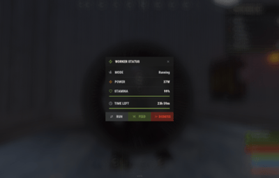 - Stamina System : Workers lose stamina over time. Below the low threshold, power output scales down. At zero stamina, power stops completely