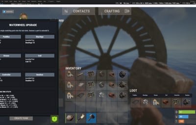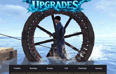 Players can open an upgrade interface by right clicking on the wheel while holding a hammer, install custom parts by dragging them into specific slots, and improve both in-water and manual wheel performance through a simple interface.