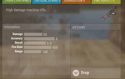 "Weapon Categories": { "melee": [ "salvaged.sword", "machete", ... ], "ranged": [ "rifle.ak", "pistol.python", ... ] }
