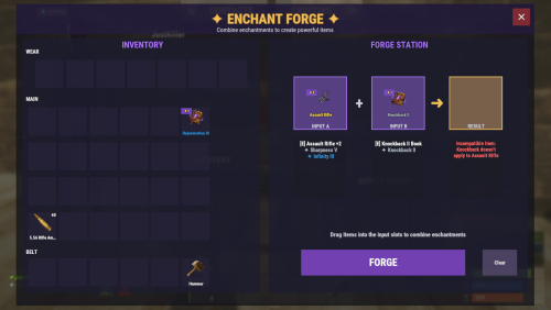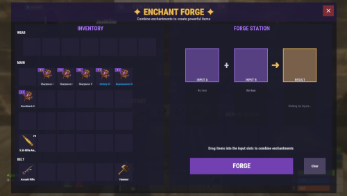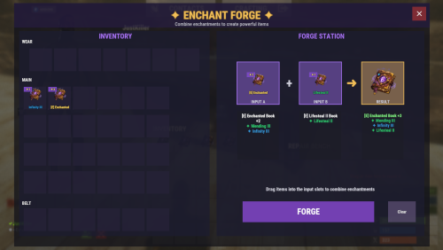 - enchantcore.forge — Allows players to use the Forge UI (must give this permission if you want to allow players to combine books or to place an enchantment to an item)