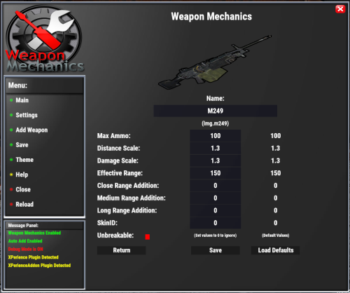 Easily adjust weapon statistics to fit your server’s gameplay. Customize a variety of attributes for any weapon, including custom names, damage, max range, effective distance, max ammo, and more. Tailor weapon performance to create unique gameplay balance and new challenges for players!