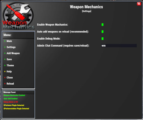 { "adminmenu_001": "Settings", "adminmenu_002": "Add Weapon", "adminmenu_003": "Close", "adminmenu_004": "Main", "adminmenu_005": "Save", "adminmenu_006": "Help", "adminmenu_007": "Theme", "adminmenu_008": "Reload", "adminmenu_009": "Menu:", "admin_001": "Name", "admin_002": "ShortName", "admin_003": "Max Ammo", "admin_004": "Distance Scale", "admin_005": "Damage Scale", "admin_006": "Effective Range", "admin_007": "Delete", "admin_008": "Edit", "admin_009": "Weapon", "admin_010": "(Set value to 0 to ignore)", "admin_011": "Enable Weapon Machanics", "admin_012": "Enable Debug Mode", "admin_013": "Weapon List", "admin_014": "(Type the item name, then hit enter)", "admin_015": "Load Default", "admin_016": "No item with found with {0}...", "admin_017": "Item already listed. {0}", "admin_018": "Search Weapon", "admin_019": "Search Results...", "admin_020": "+ Add", "admin_021": "... type here ...", "admin_022": "⇧ Prev", "admin_023": "Next ⇨", "admin_024": "Default data not found, Reload/Fire weapon to store defaults..", "admin_025": "Auto add weapons on reload (recommended)", "admin_026": "Main Icon", "admin_027": "No Weapons Listed Yet... \n Enable Auto Add or Click Add Weapon on the menu to start adding weapons.", "admin_028": "Close", "admin_029": "Close Range Addition", "admin_030": "Medium Range Addition", "admin_031": "Long Range Addition", "admin_032": "Admin Chat Command (requires save/reload)", "admin_033": "Select Theme", "admin_034": "Breakable", "adminmessage_001": "Weapon Mechanics Enabled", "adminmessage_002": "Debug Mode is ON", "adminmessage_003": "Auto Add Enabled", "adminmessage_004": "ImageLibrary Plugin Missing", "adminmessage_005": "XPerience Plugin Detected", "adminmessage_006": "XPerienceAddon Plugin Detected", "adminmessage_007": "Message Panel:", "adminmessage_008": "Weapon Mechanics Disabled", "admin_help_000": "Thank you for using our Weapon Mechanics plugin!\n\n These help pages will hopefully guide you in adjusting each weapon to best fit your needs. Be aware that these adjustments effect all weapons on a global scale and they will remain effected until your server restarts Weapon Mechanics plugin is removed or disabled!\n\n I recommend making minor adjustments in a private setting to find what best fits your needs. These adjustments are applied on each fire/reload if the weapon data doesn't match the Weapon Mechanics settings.\n\n Join our discord - discord.rustlevels.com - The fastest way to get the help and support you need from our great community!\n\n Continue to the next pages to view details on settings, their seffects, and what to do if something goes wrong.", "admin_help_001": "Settings: (Green = On/True - Red = Off/False)\n\n Enable Weapons Mechanics:\n By default Weapon Mechanics is disabled so that you can look around the admin panel before any changes are made. Turning this option on will allow the plugin to change all weapons listed on the main page. Turning this option off will stop any changes from being made to listed weapons however any weapon changed prior will still be effected.\n\n Auto add weapons on reload:\n This option allows the plugin to automatically add weapons to the main page with their default settings if they are not already listed. This is the easiest way to add weapons to the list. Weapons must still be reloaded at least 1 time to be automatically added to the Weapon Mechanics list.\n\n Enable Debug Mode:\n This is for helping find issues or see what is happening when Weapon Mechanics is enabled. Messages will be posted in your server console with information that can be useful when reporting bugs. Keep this disabled unless needed.\n\n When any of these options are enabled they will be listed on the menu display. This display will also alert you of any installed plugins that are directly supported or known to conflict.", "admin_help_002": "Weapon Adjustments:\n\n <color=yellow>Name:</color>\n You can edit the default name of any weapon. Customize your server with unique weapon names.\n\n <color=yellow>Max Ammo:</color>\n This is the new maximum amount of ammunition this weapon will hold. Players must still have the ammo needed to fill the weapon.\n\n <color=yellow>Distance Scale:</color>\n This changes the distance scale this weapon uses to determain how far the fired projectile will travel. The value works much like a percentage % based off a predetermained global distance scale. Increasing or decreasing this value will effect how far the weapons projects can travel.\n\n <color=yellow>Damage Scale:</color>\n This changes the damage scale this weapon uses to determain how much damage a fired projectile can cause. The value works much like a percentage % based off a predetermained global damage scale. Increasing or decreasing this value will effect how much damage the weapons projects can cause.\n\n <color=yellow>Effective Range:</color>\n This changes the effective range this weapon has and how much damage the fired projectile will lose over distance. The value is based off distance in meters and the fired projectile will drop damage potential increasingly after this distance. Increasing or decreasing this value will effect how far the fired project can travel before it begins to lose damage potential.", "admin_help_003": "Troubleshooting:\n\n <color=yellow>Weapons Not Effected?:</color>\n\n - Make sure Weapon Mechanics is enabled in the settings. By default Weapon Mechanics is disabled so that you can look around the admin panel before any changes are made.\n\n - Enable (Debug Mode) on the settings page and try reloading the weapon that isn't effected. In your server console you will see messages posted step by step when Weapon Mechanics tries to change the weapon as it reloads. Look for any messages that might explain what is happening and why the weapon is not being changed. If any errors appear report them to the developer.\n\n - If you are using any plugins that alter weapons, try unloading those plugins and see if Wea