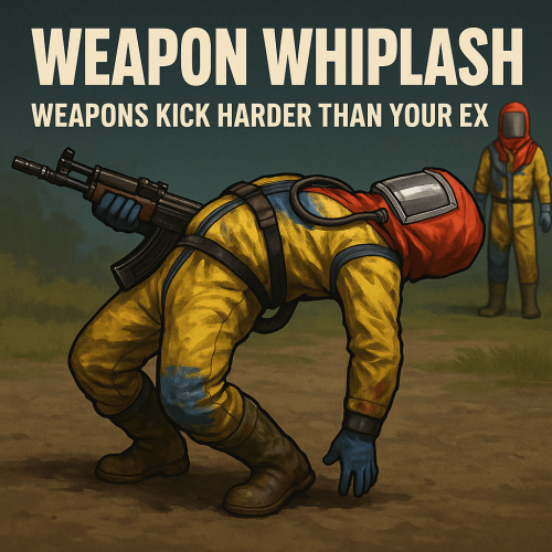 Weapon Whiplash adds extreme recoil knockback to Rust weapons, launching players backwards every time they fire a gun. Each weapon uses its own customizable launch force, allowing effects that range from mild pushback to full power map wide launches.