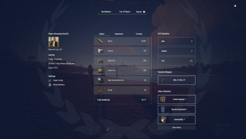 - At the moment there are 3 main pages (my statistics, top 10, search)