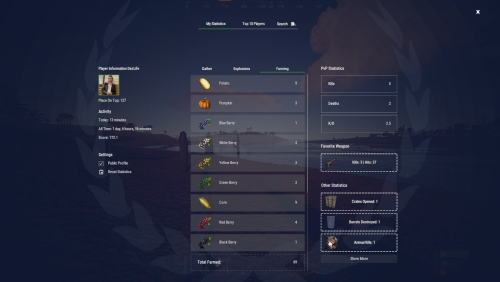 private JObject API_GetAllPlayerStat(ulong id) private JObject API_GetPlayerPlayedTime(ulong id) private Dictionary<string, int> API_GetGathered(ulong id) private int? API_GetAllGathered(ulong id) private int? API_GetGathered(ulong id, string shortname)
