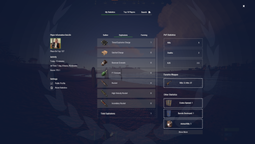- [CONSOLE] stat.ignore <add/remove> <Steam ID|Name> - (Adds the player to the ignore list. Also removes it from the statistics)