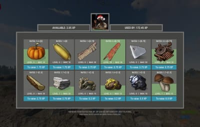 - Configuring the issuance of XP. [ Loot, kill, break barrels, open crates, pick from the ground, harvest ]