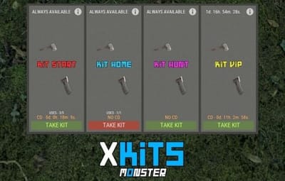 /k, /kit, /kits - to open the kits menu. [ Commands can be changed in the config. ] /k kitName, /kit kitName, /kits kitName - to take a kit. [ Commands can be changed in the config. ] /kit.admin givekit kitName - give a kit to the inventory of the player you are looking at. (Admin permission) xkits_admin_kit_ccmd give steamID kitName seconds - give kit to a player. [ You can change the seconds and thus change the date of deleting the kit from the player. 0 - the kit will always be available to the player. seconds: 1000 or -1000. Automatically converted to Unix-time. ] xkits_admin_kit_ccmd remove steamID kitName - remove a kit from a player. [ The kit will no longer be available to the player. ] xkits_admin_kit_ccmd givekit steamID kitName - give a kit to the inventory of the player.