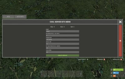 - Easy Kit Management: Create, edit, and view kits, cooldowns, limits, items, blueprints, modules, genes, chances, and slots in the UI.