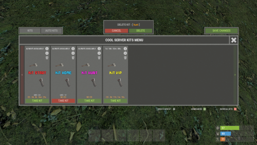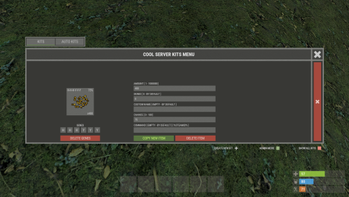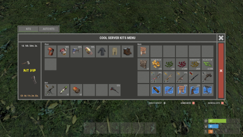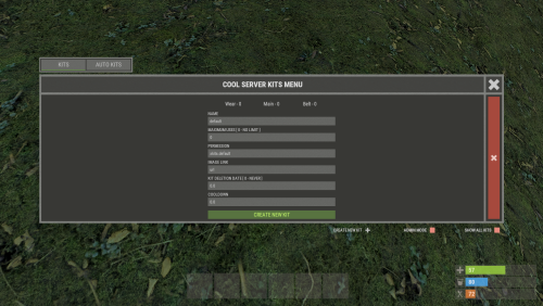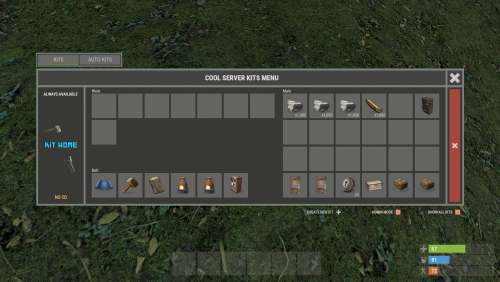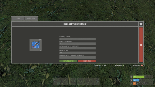 - Easy Kit Management: Create, edit, and view kits, cooldowns, limits, items, blueprints, modules, genes, chances, and slots in the UI.