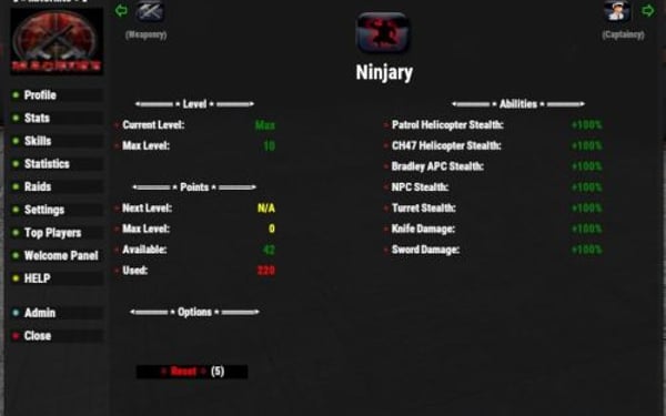 - Set Stats/Skills boost per rank