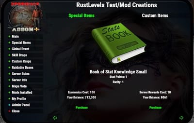 - Option to enable server rewards purchase of special items