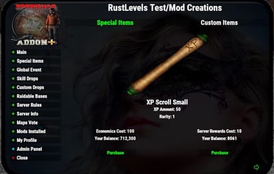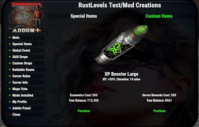 This Addon collects all player data from XPerience, Kill Records and other mods if enabled and sends it to RustLevels.com through SQL. All servers with this addon mod can be be publicly shown on RustLevels.com with their own page and player profiles if you choose. Once purchased you must submit your server's IP or DNS to our website here: https://www.rustlevels.com/submit-server so that it can be allowed to access RustLevels database and receive your Unique ServerIDKey to place in your config file . Please allow up to 48 hours for your server to be accepted.
