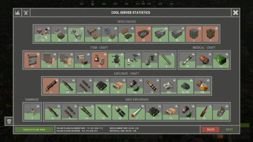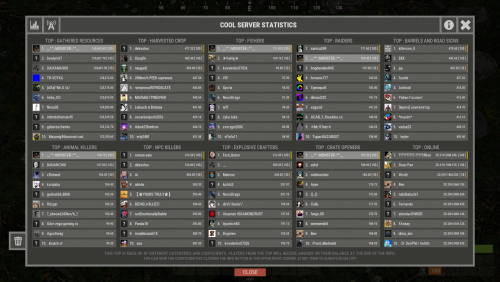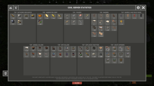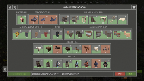 - Server events (Bradley, Chinook, and Patrol Helicopter) count as stats for the player who did the most damage.