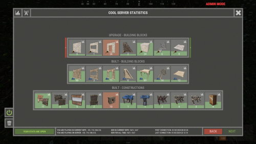 xstatistics.use - access to the statistics menu. xstatistics.top - access to the TOPs of subcategories. xstatistics.coefficients - access to view the coefficients. xstatistics.player - access to view player statistics, player list and player search. xstatistics.resetwipe - access to the ability for a player to reset his statistics - WIPE. xstatistics.resetall - access to the ability for a player to reset his statistics - ALL TIME. xstatistics.shstats - access to the ability to hide/open your statistics. [ If the permission has been revoked, the statistics privacy will automatically change to default. ] xstatistics.admin - access to admin mode.