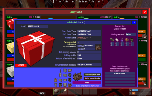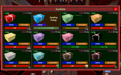- Powerful Admin UI: An extensive in-game admin panel to configure every aspect of the 12 auction boxes.