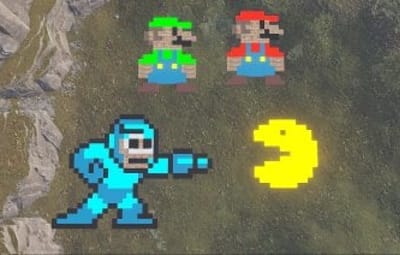 A set of four 8 bit characters. Has Mario, Luigi, Pac-Man and Megaman.
