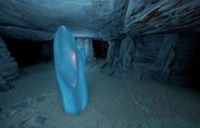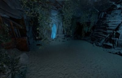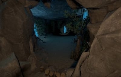 A small monument with an underwater cave. There is a big furnace in the cave