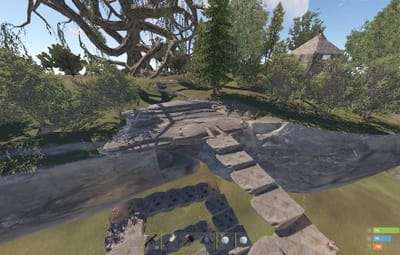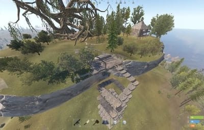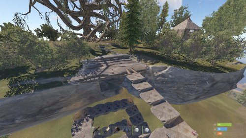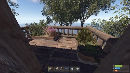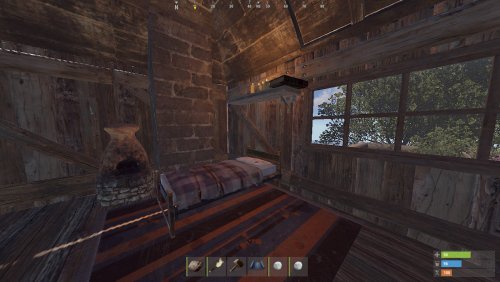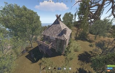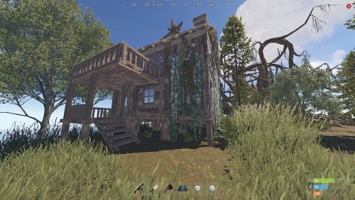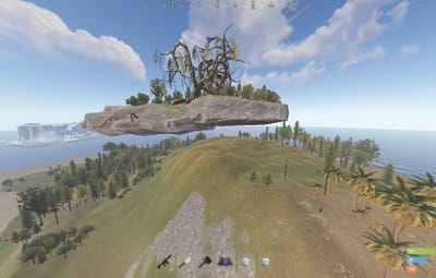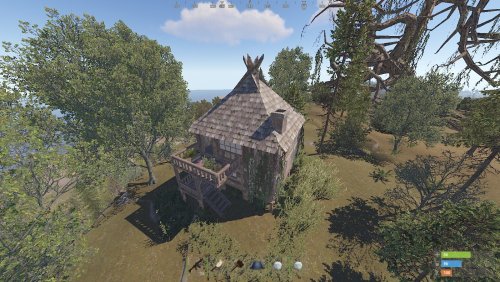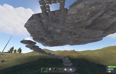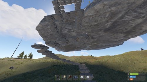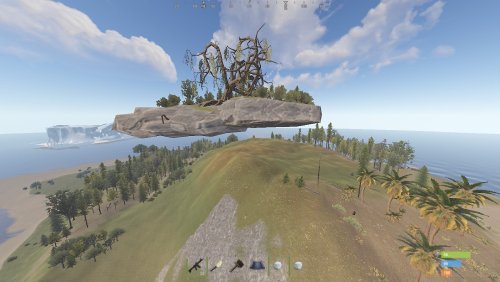 There is a house on this island.Inside there is a melting furnace, a bed and a fireplace.You can put a foundation around the house and only near the stairs inside the house.Put this island preferably in a forest biome, navigate up the stairs
