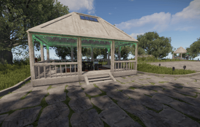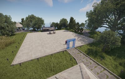 This is an air island to build a base, there is a ready-to-use farm and stables. Horses spawn in the stables, to pick them up, you need a saddle. This place is ideally built with foundations. There is a night light that turns on automatically. It's perfect for PVE
