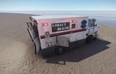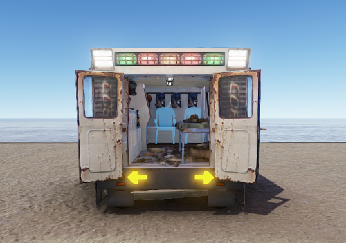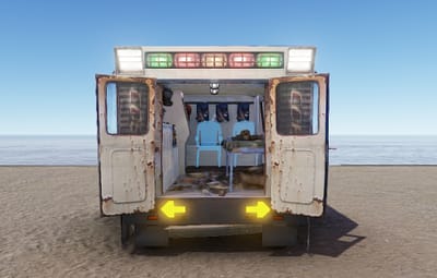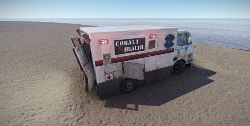 *Note: As of the deep sea Rust update the ambulance is now black due to Facepunch making desks black instead of white.
