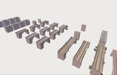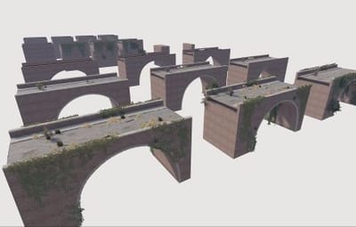 This is a set of modular arch bridge components, designed for easy assembly into various arched bridge configurations—whether for road or railway. Each piece can be snapped into place, allowing you to create diverse bridge designs for any map with ease.