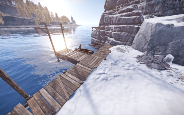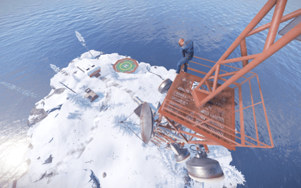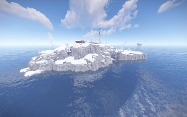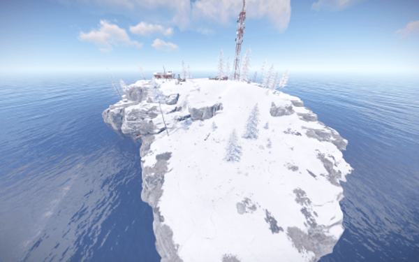 Arctic Grotto is a 1 grid and a half size island ( see pictures for size reference) built for off shore player base building , the top of the island is reachable from the side of the island or by flying , the inside is reachable by boat or swimming.