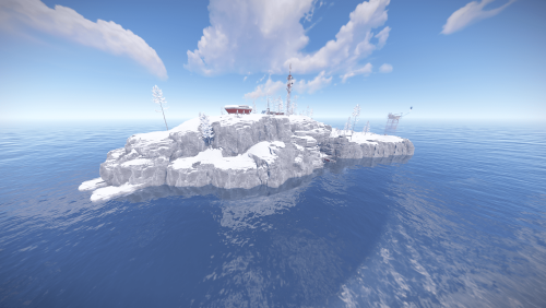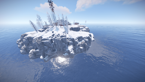 Arctic Grotto is a 1 grid and a half size island ( see pictures for size reference) built for off shore player base building , the top of the island is reachable from the side of the island or by flying , the inside is reachable by boat or swimming.