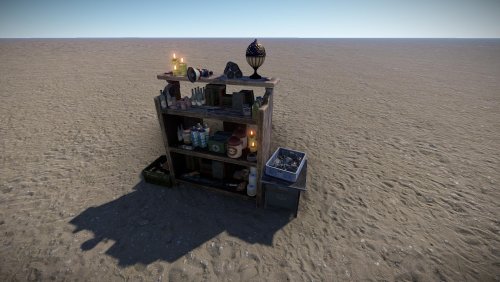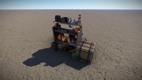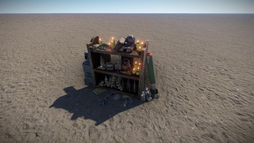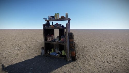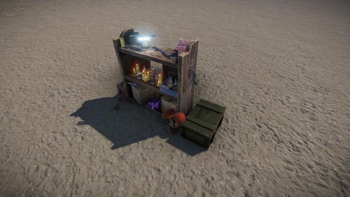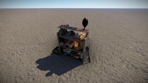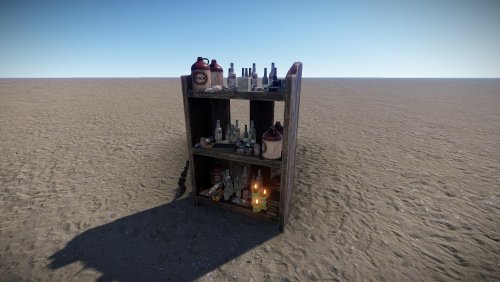 For a Rust-themed bar shelf decoration, one idea would be to display items related to monument. On three separate shelves, arrange the red card, green card, and blue card used to open monument doors. These cards are crucial items in the game, so showcasing them would be a great homage to Rust players. On another shelf, place a vintage-style radio that can be turned on and tuned to various stations, adding an interactive element to the decor. Finally, on the remaining shelves, install musical Rust eggs that make sound when opened. These eggs are unique features in the game, so showcasing them would add a playful and quirky touch to the bar's ambiance. Overall, this bar shelf decoration would be a fun and interactive way to pay tribute to Rust's essential items and add an entertaining element to the bar experience.