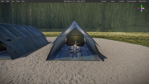 This set includes a basketball court, a restroom, a log cabin and a few tents. Obviously you can copy and paste more tents and give them your own decoration.