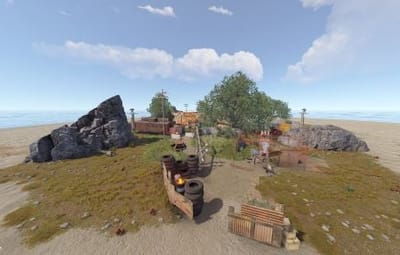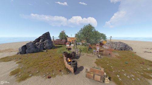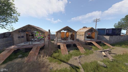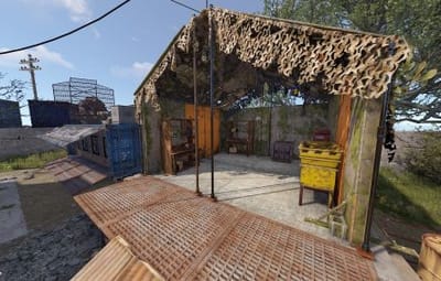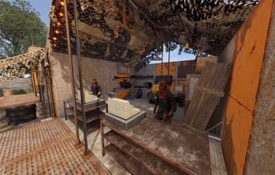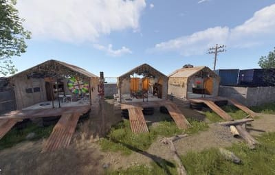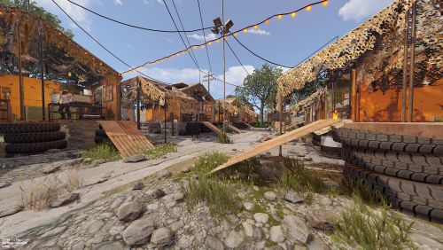 It includes all the merchants available in the game, has a beautiful appearance, and I dedicated a lot of time to it. It features 11 unique pavilions in an urban bazaar style, each pavilion distinct from the others and containing what is sold within. This prefab is very compact and will fit perfectly on any of your maps. There is also space for purchasing mini-drones and in-game quests. It includes everything available in BanditCamp and Outpost. I will continue to update it and add new features in the future.