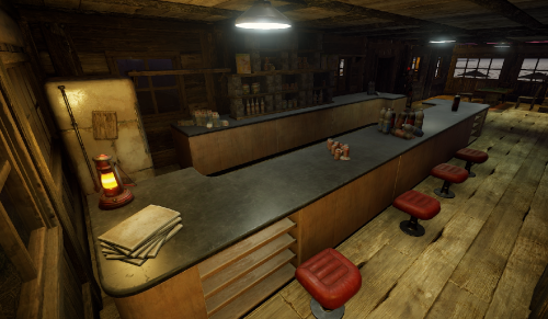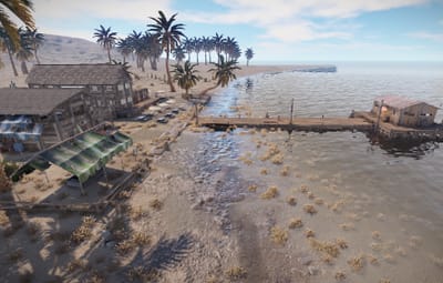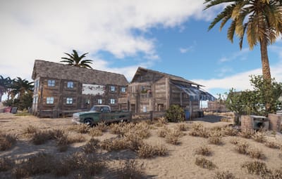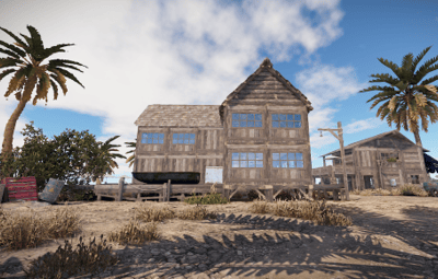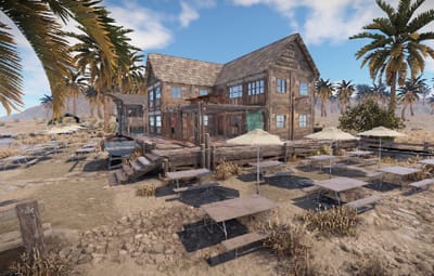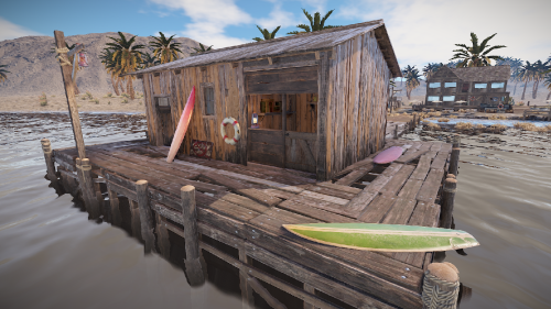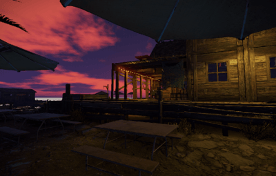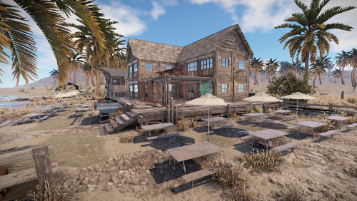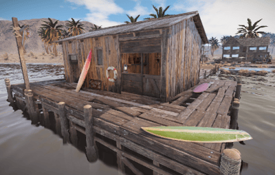 The beach club is a small but nice prefab, with many details. Explore the bar, kitchen, lounge and a surfshop. In the upper part is the chill out area. Loot is everywhere. The outbuilding probably belongs to the surf instructor.