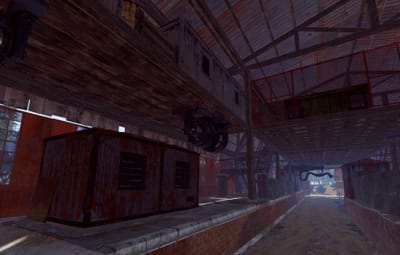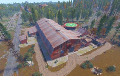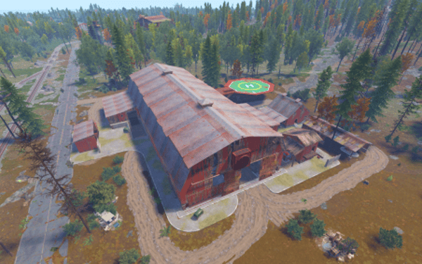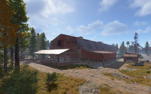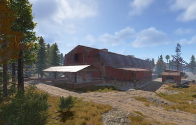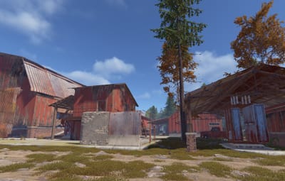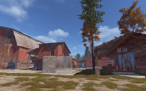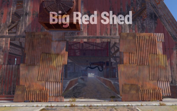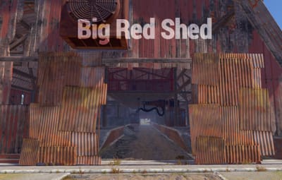 A series of huts gathered together around a large shed. Vehicles may drive through on the interior lane. Above is an elevated floor with nooks and corners to explore. This rustically red monument has low-tier loot throughout. Plenty of space to add your own NPCs, puzzles and hi-tier gear.