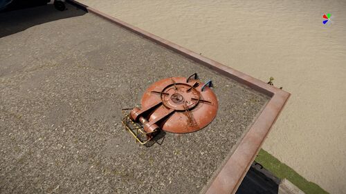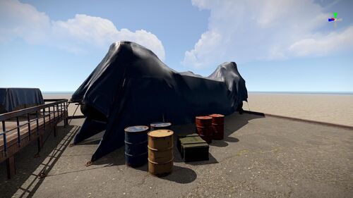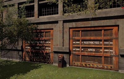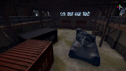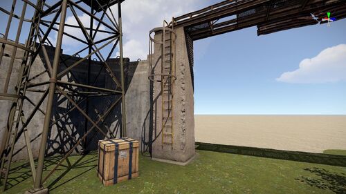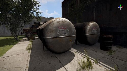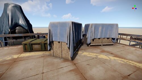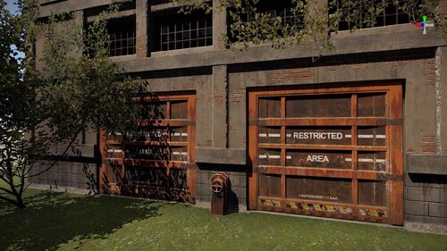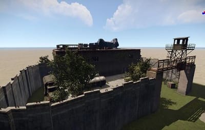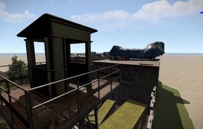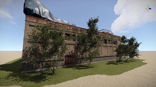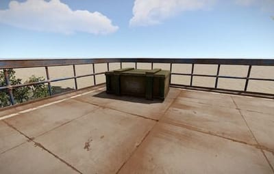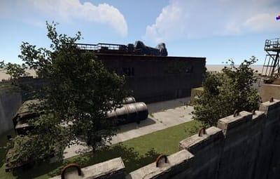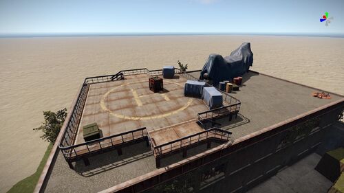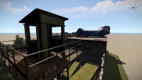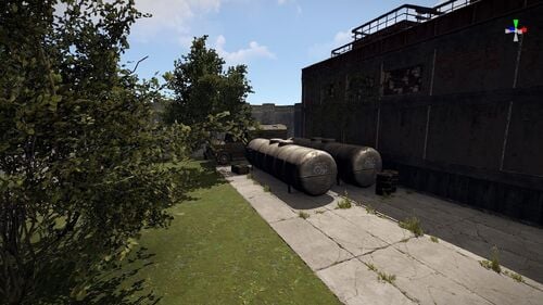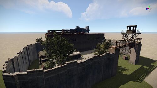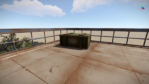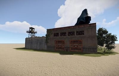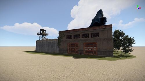 - Сам монумент имеет одно большое заросшее здание и небольшой "двор". Из главного здания есть 4 выхода с каждой стороны. Во дворе есть 2 дизельные бочки и 2 спавнера ящиков, также там спавнятся боты.