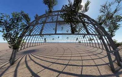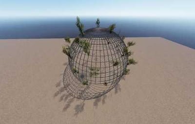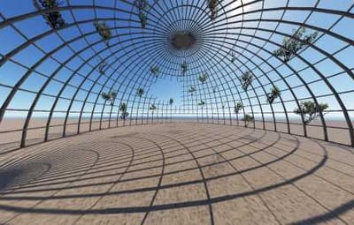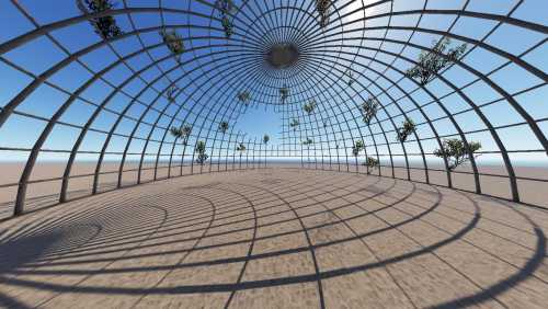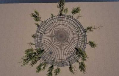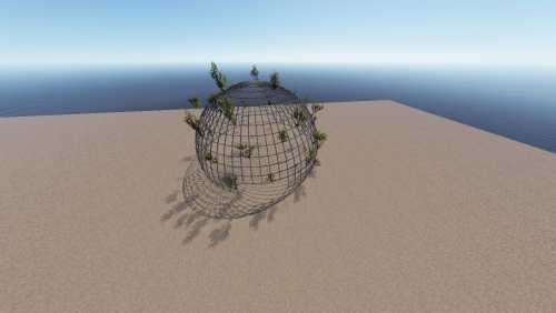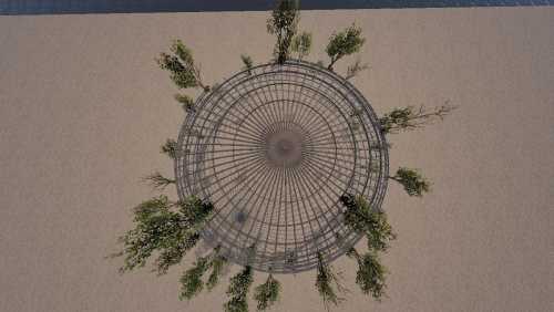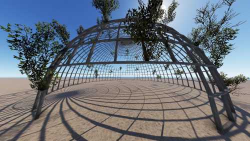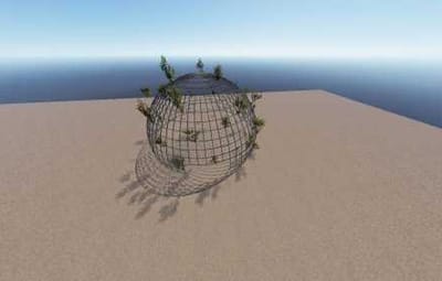 There is nothing special, a simple empty dome with little bushes around in Jurrasic Park Domes' style for flat maps or maps where you can rise terrain.