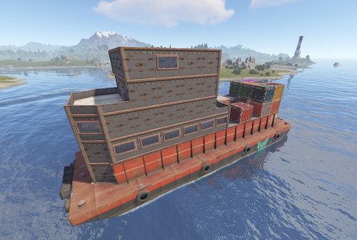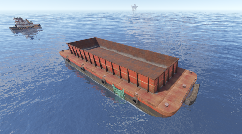 Floating lost at sea, this abandoned barge is available for your players to build upon.