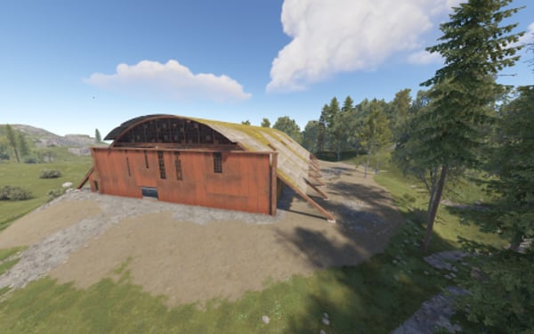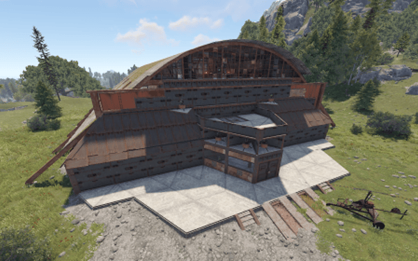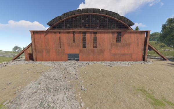 The stock airport hangar was scaled down to fit a huge 16x10 foundation to build upon. The front door was sealed up better and a door hole installed in line with a foundation block.