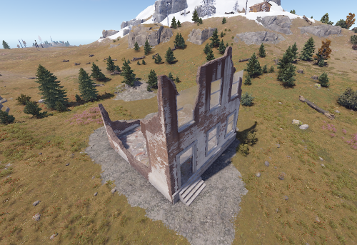 Splat, Height & Topography are included to make this a very easy drag and drop prefab for your map. Prevent building cubes are places to keep players within the confines of the structure to preserve the amazing look of a decayed building. Windows have been added in to give players a nice view and security.