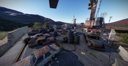 The car park contains a short parkour session to find a military crate. Very suitable as a replacement for a warehouse/supermarket/gas station.