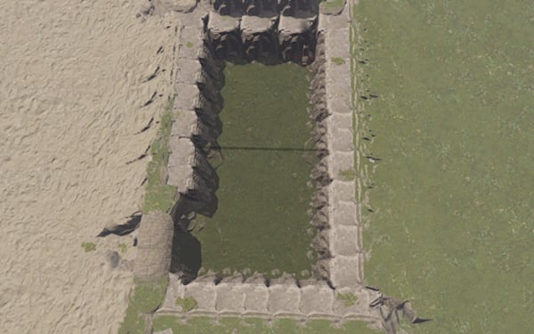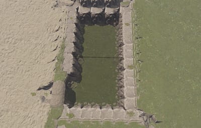 Chiseled Rock Build Area raised off the ground with large Furnace built-in and glass roof