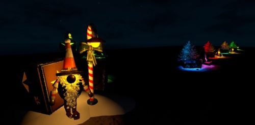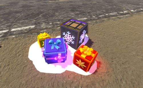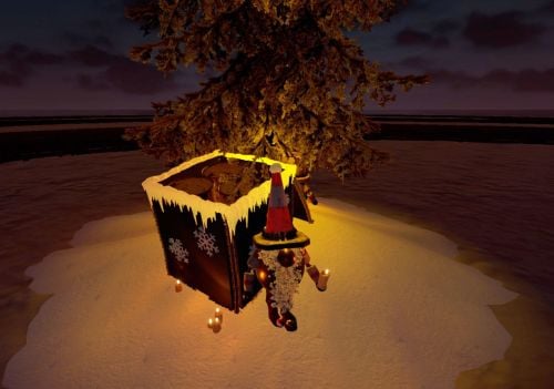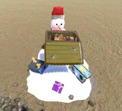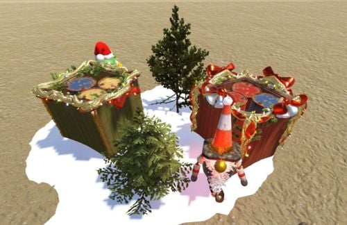Loot piles decorated with gnomes, snowmen, presents and colorful christmas trees (20 in total),