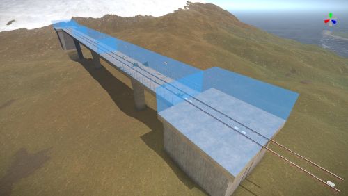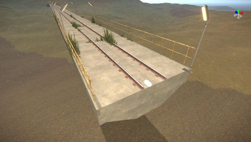 A simple styled, straight, concrete rail bridge comprised of three single track sections; the central span and two bridge end pieces that you can connect to your existing rail network. Use the rail sockets to join as many central sections as you need to the bridge ends to create your bridge.