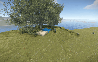 At the base of the cove to the left side there is a small dock for boats and at top a helipad for helicopters and minicopters.
