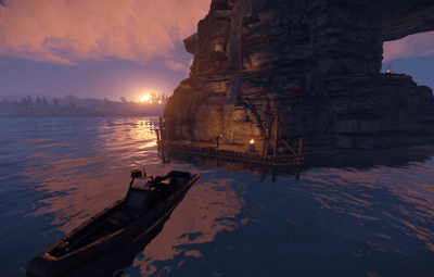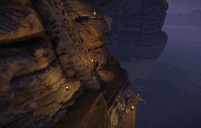 Players can climb the rocks ladder all the way to the top guided by lanterns and build bases on top of the cove.