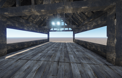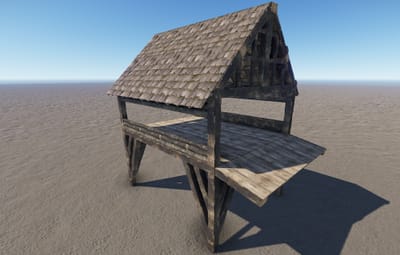 A covered wooden bridge that comes in two pieces.