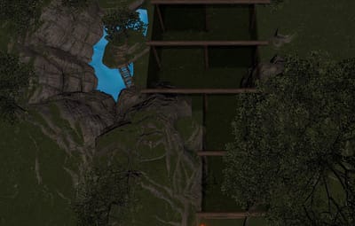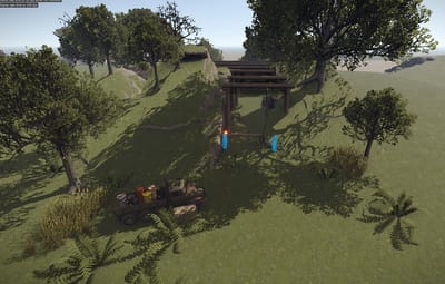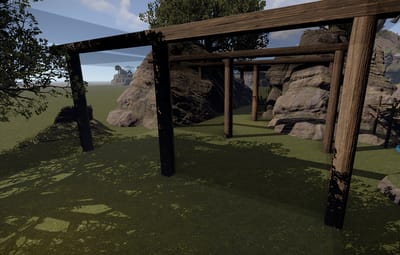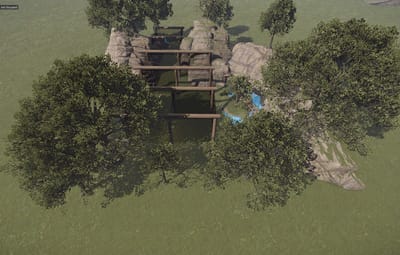 Custom Rock Formation Build Area with wooden frame and glass walls mostly hidden from passers-by.